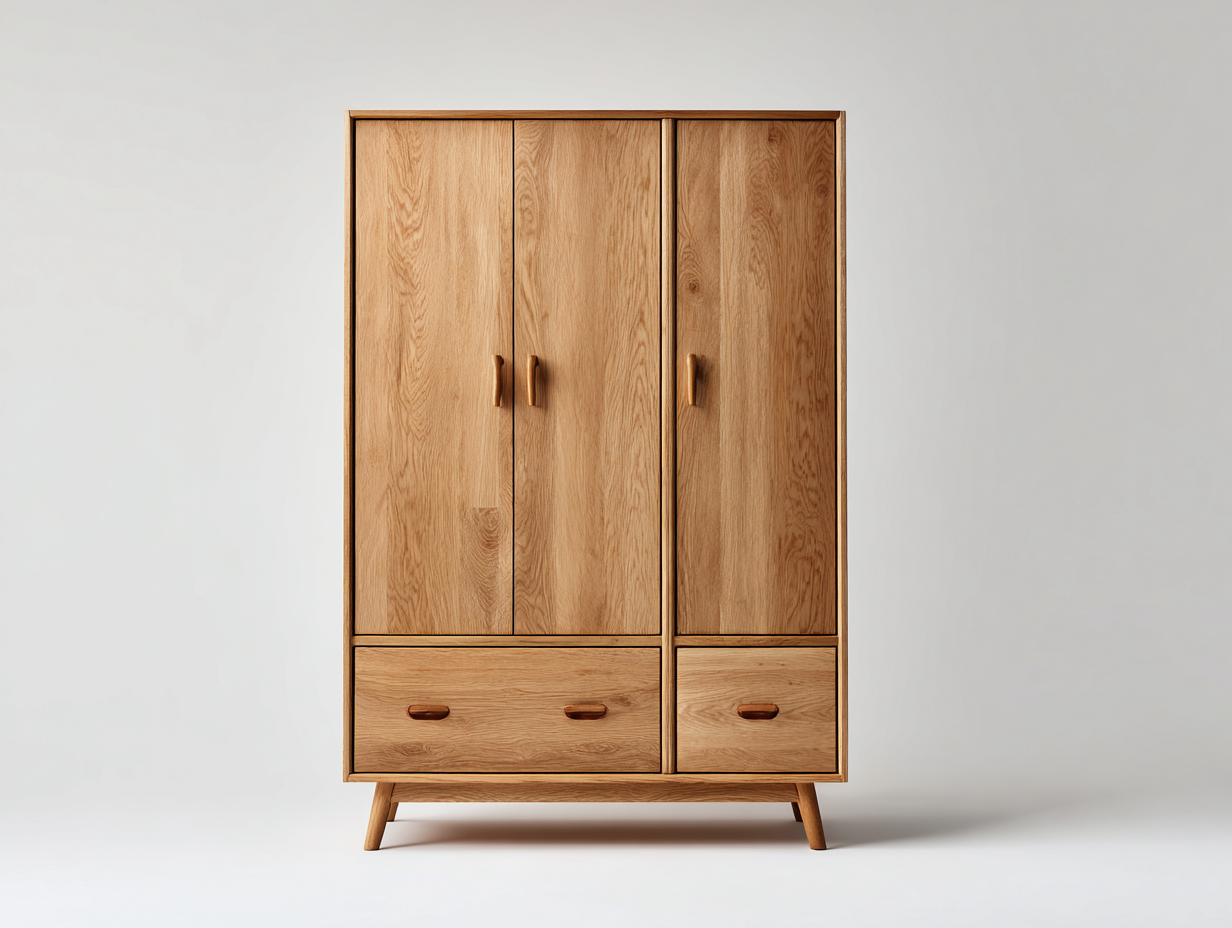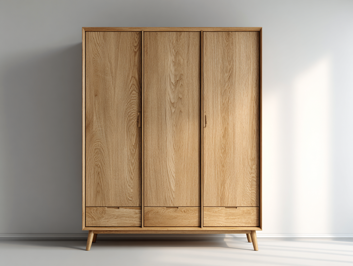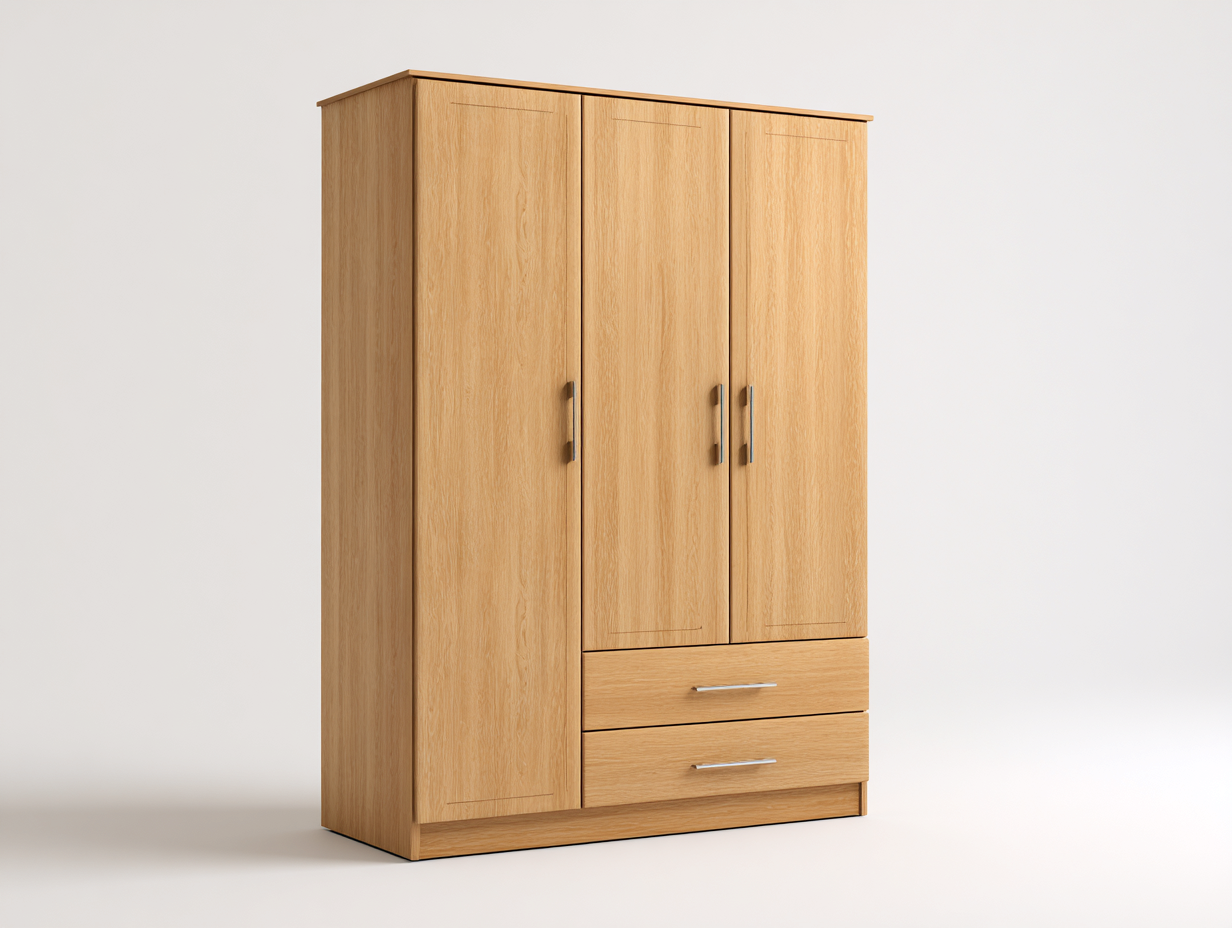 Armarios de tres puertas madera 120x55x180 cm roble claro para dormitorio estilo moderno