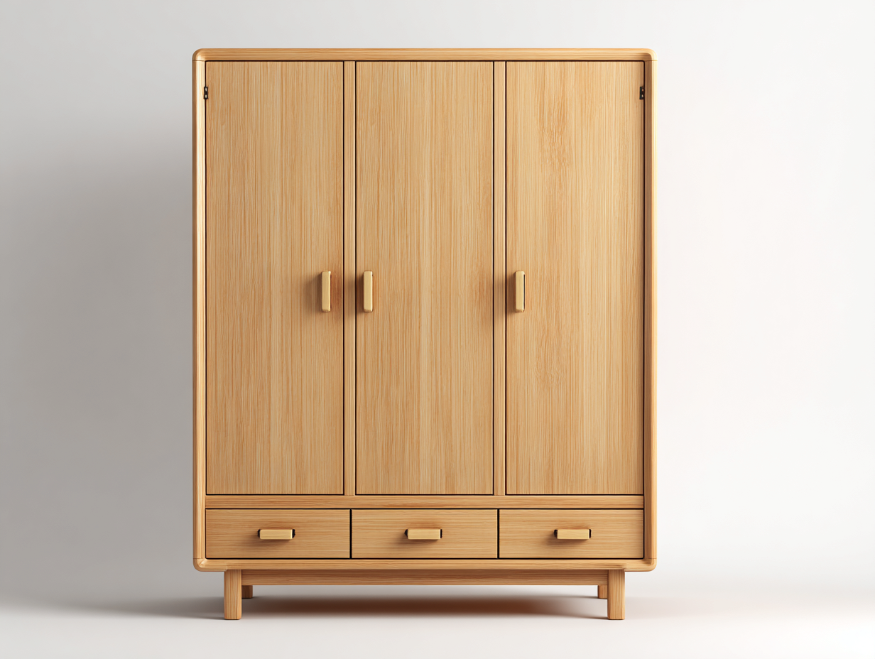 Armarios de tres puertas madera 150x55x180 cm natural para dormitorio diseño moderno