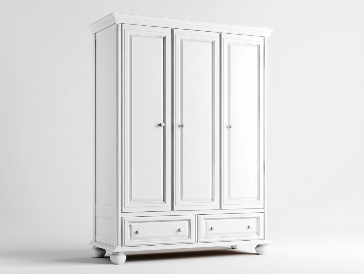Armarios de tres puertas madera 150x60x200 cm blanco con cajones para dormitorio diseño clásico