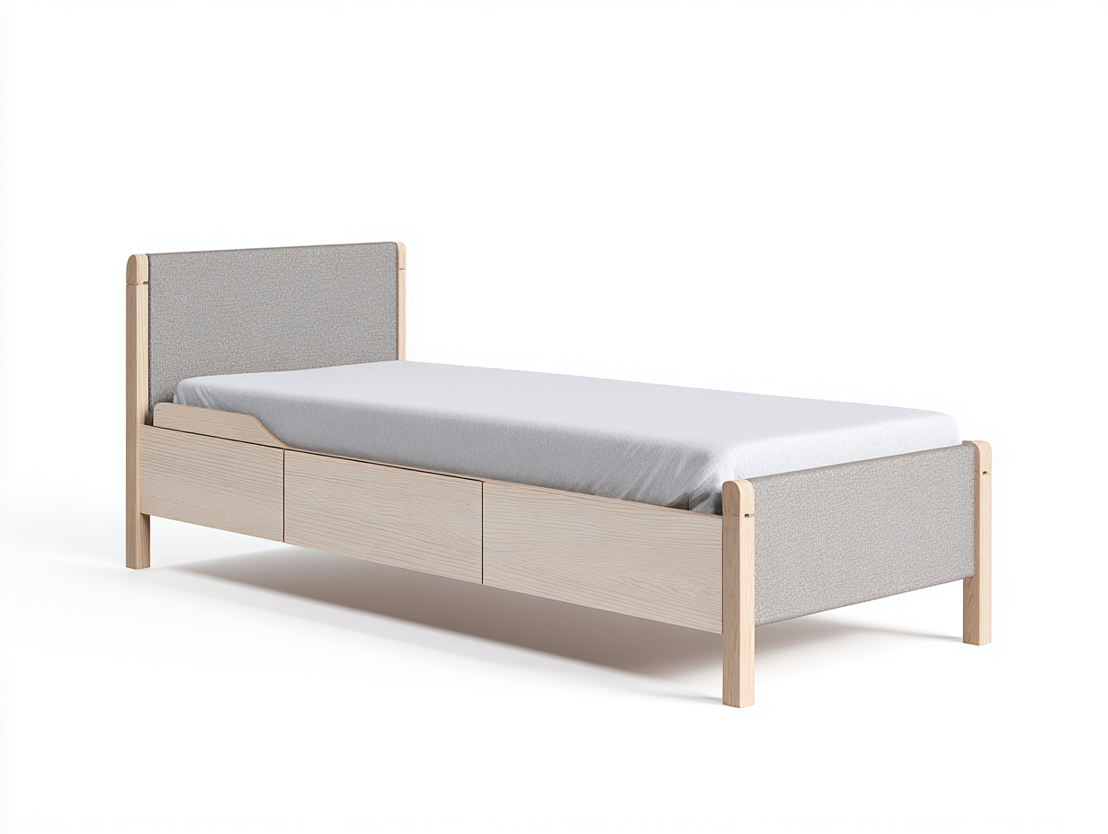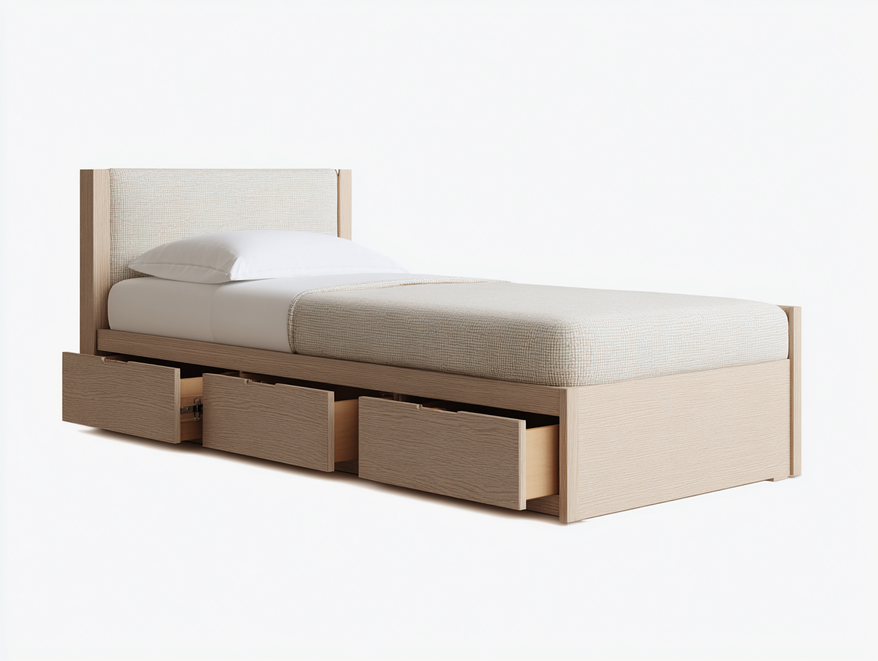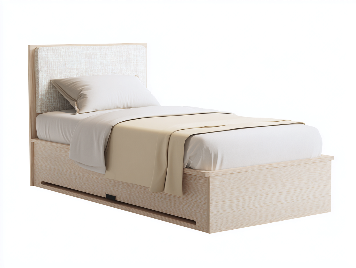 Camas individuales de madera con cabecero tapizado y 4 cajones 200x100x115 cm natural para dormitorio - diseño moderno funcional