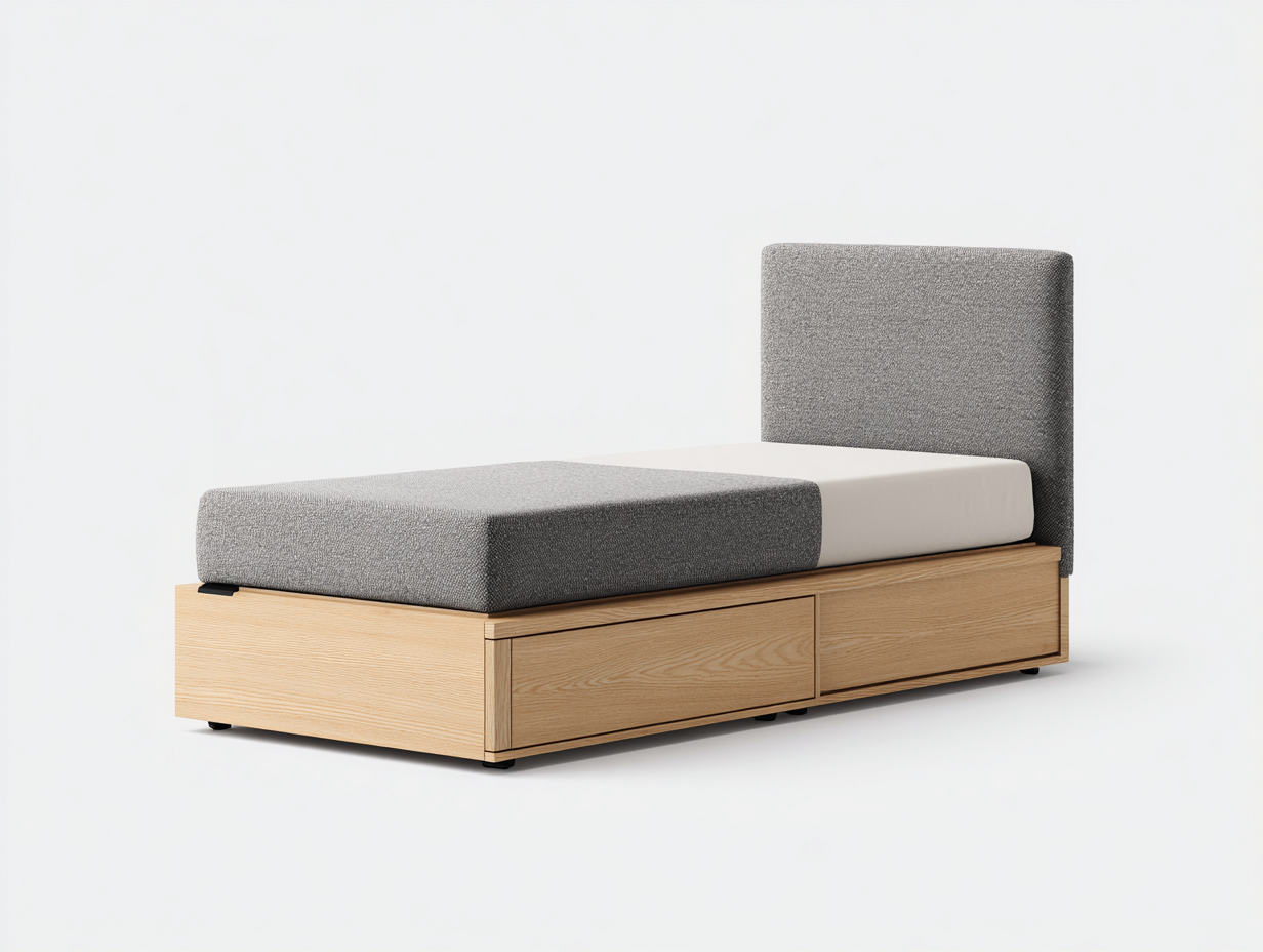 Cama individual madera con almacenaje 200x100x90 cm - roble-gris - para dormitorio - diseño moderno