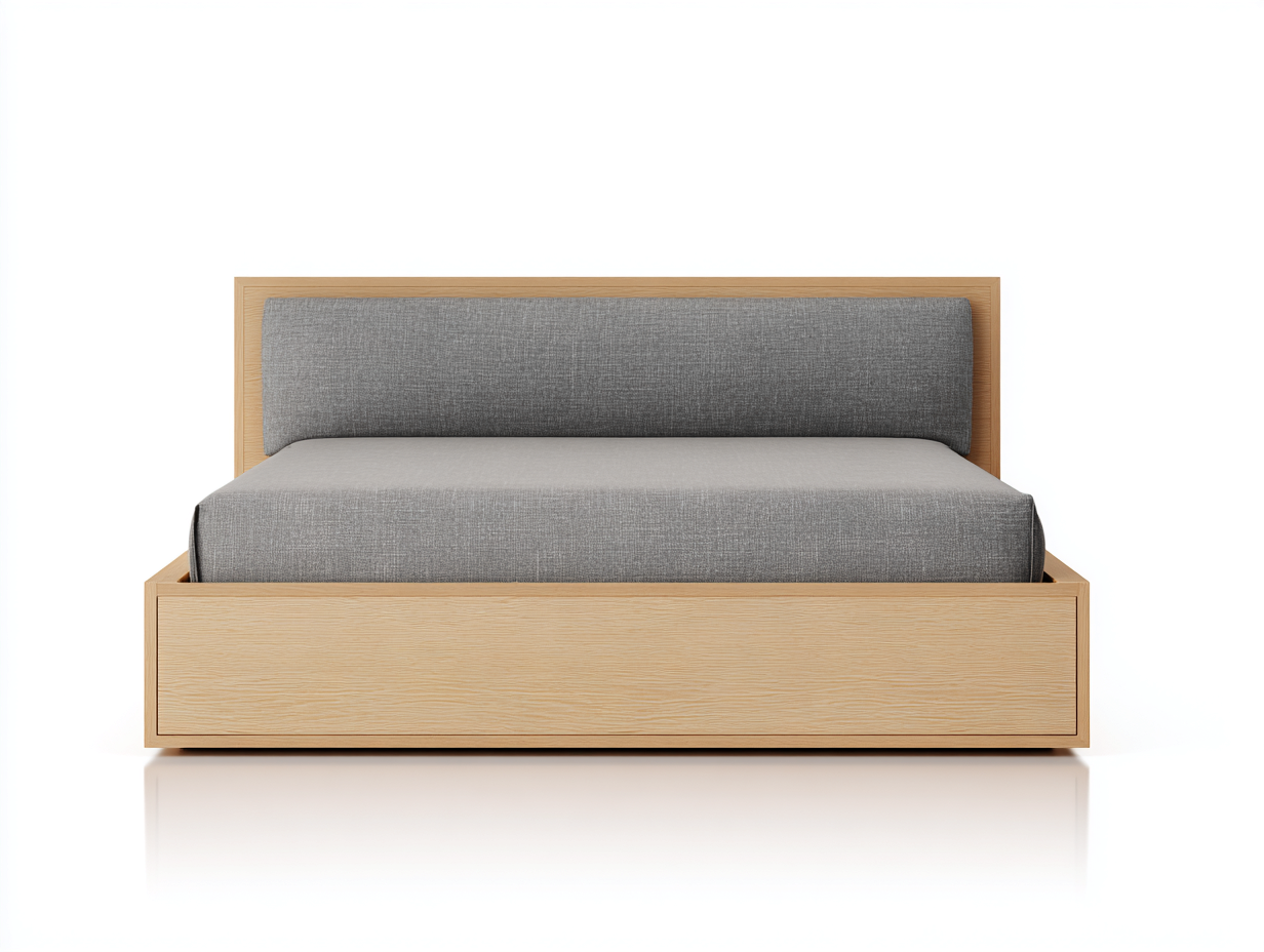 Camas dobles madera 200x100x90 cm natural con cabecero tapizado gris para dormitorio diseño moderno