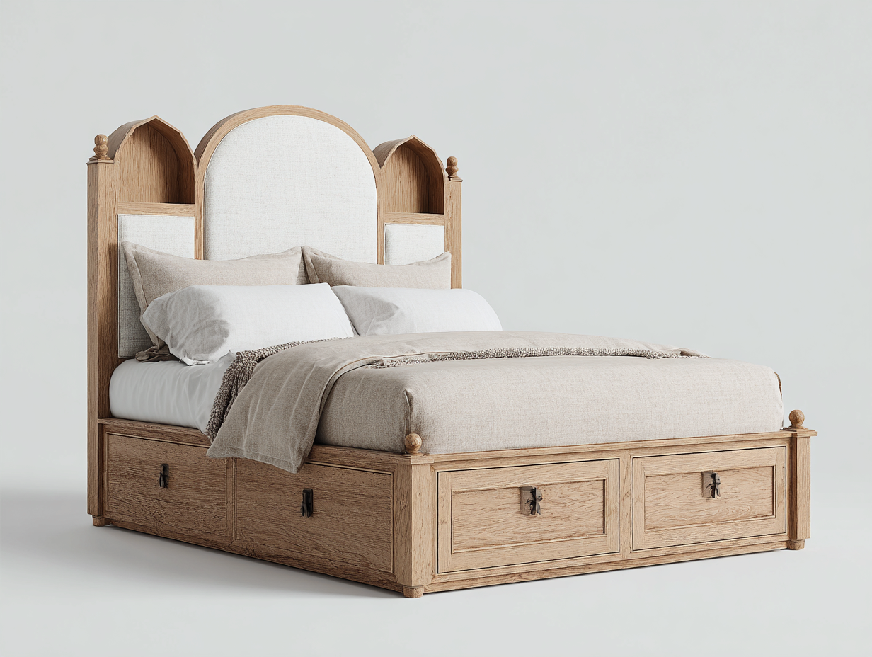 Camas dobles de madera con cabecero tapizado y 4 cajones 200x160x120 cm natural para dormitorio - diseño clásico funcional