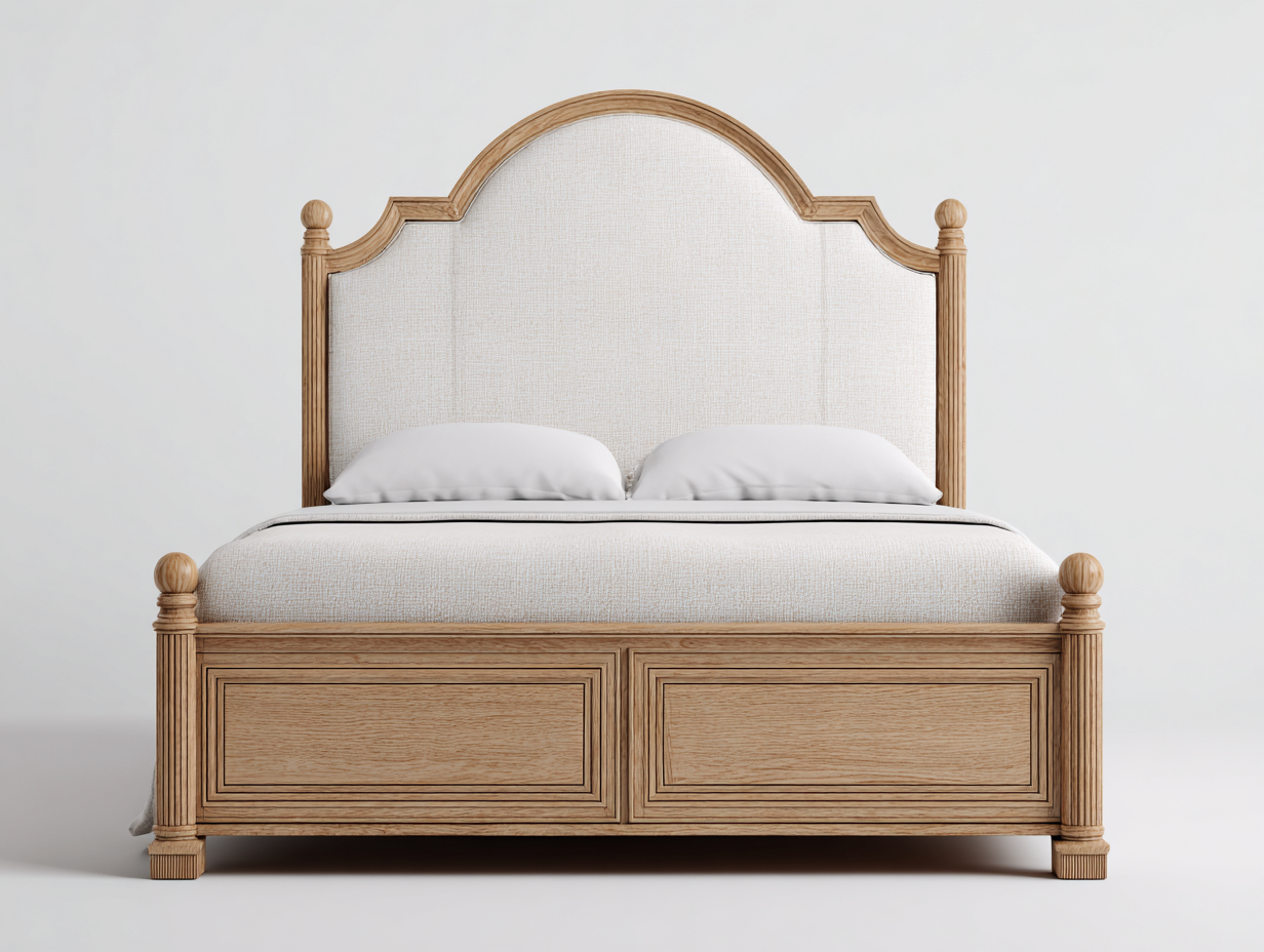 Camas dobles madera con cabecero tapizado 200x160x120 cm roble claro para dormitorio estilo clásico